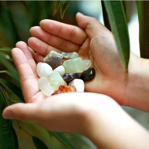 – een pleisterblok met 8 ingebedde, echte kristalen