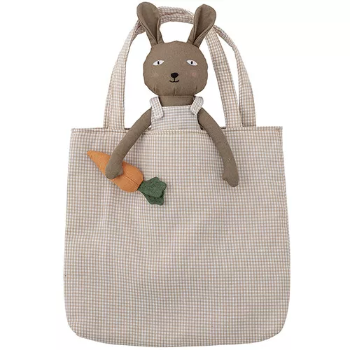 In de meegeleverde draagtas met bijpassend ruitjespatroon kan de konijnenknuffel, of ander klein speelgoed, overal mee naartoe.