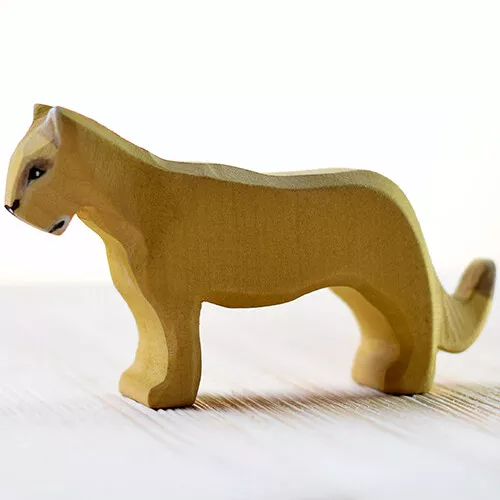In een vrolijk safari tafereel op de speeltafel zou deze handgemaakte, houten leeuwin ‘Lion Female’ van het Roemeense merk Bumbu Toys zich helemaal thuis voelen. Het duurzame speelgoed, geïnspireerd op de natuur, prikkelt de verbeelding van kinderen.
