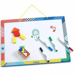 Janod Dubbelzijdig Schoolbord Met Verstelbare Poten – Geel-grijs