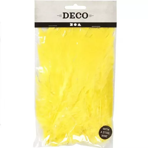 Geef kuikentjes een statige staart of zachte vleugels met deze gele kalkoenveren van het Deense merk Creativ Company.