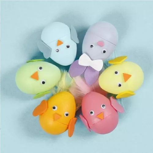 De veren kunnen door het ijzerdraad makkelijk ingestoken worden, maar kunnen ook ter decoratie dienen in een vaasje op bijvoorbeeld de paastafel.
