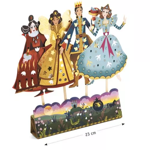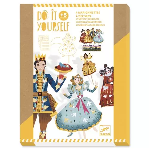 Om zelf het sprookje van Assepoester te maken met het Do It Yourself knutselsetje ‘Puppets – Cinderella’ van het Franse merk Djeco. Met de vier belangrijkrijkste karakters uit het bekende verhaal.