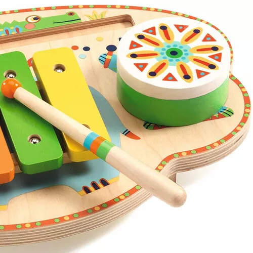 Dat wordt een uitbundig feest met deze ‘Carnaval Muical’ van het Franse merk Djeco. Het mini orkestje bestaat uit vier instrumenten met een stokje, t.w. een xylofoon, een bekken, een trommel en een maracas, die uit het spelbord gehaald kan worden.