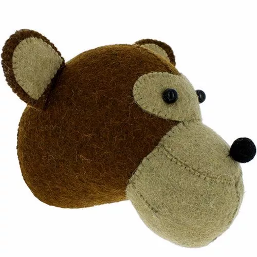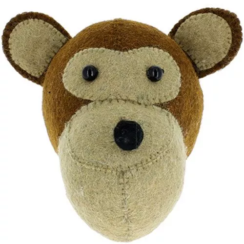 Een olijke apenkop, ontworpen door de Engelse Fiona Walker. Deze vilten dierenkop is een geweldige eye-catcher in de kinderkamer, speelkamer of woonkamer.
