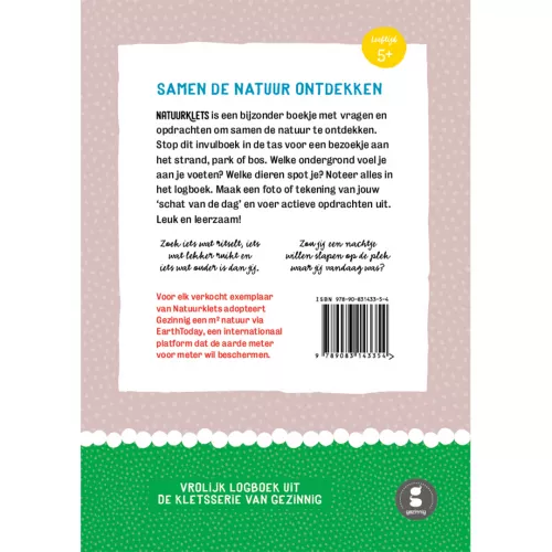 Ook draagt het boekje bij aan een groenere wereld. Voor elk verkocht exemplaar van Natuurklets adopteert Gezinnig één m² natuur via EarthToday, een internationaal platform dat de aarde meter voor meter wil beschermen.