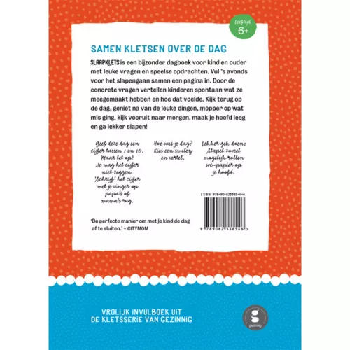 Laat voor het slapen de dag bezinken met dit dagboek ‘Slaapklets – Deel 3’ van het Nederlandse merk Gezinnig. Met nieuwe vragen en opdrachten voor een moment van ontspanning of gezellige gesprekjes tussen ouder en kind.