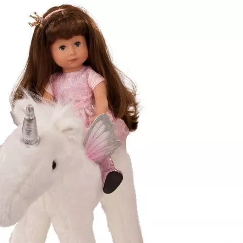 Dit witte, gevleugelde paard ‘Pegasus Opal’ van het Duitse merk Götz is speciaal voor een paardenmeisje, dat haar pop wil laten paardrijden op een magisch paard. Het poppenpaard heeft een zilveren hoorn en roze vleugels met glitters.