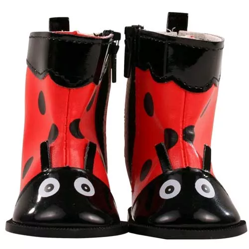 De lieveheers laarzen zijn ideaal om aan te doen als de pop meegaat naar buiten in de regen. Aan de zijkant zit een ritsje.
