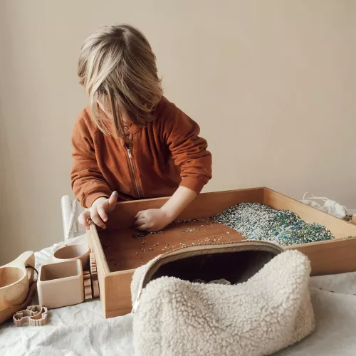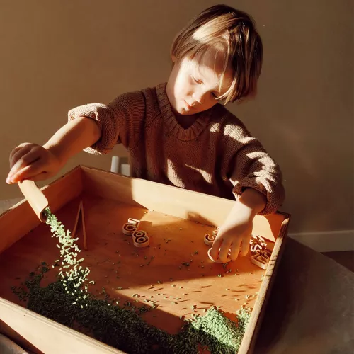 Combineer de speelrijst met andere kleuren en de speelbak en accessoires van Grennn. Berg de rijst na het spelen weer op in het zakje en bewaar het op een droge plek.