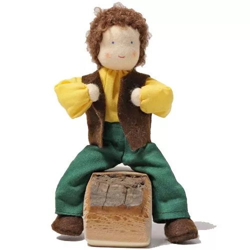 Deze vrolijke man met bruine krullen Herr Erle van het Duitse merk Grimm’s is een prachtig handgemaakt poppenhuispopje om mee te spelen. Het speelgoedpopje heeft een zacht lichaam met beweegbare armen en benen. Zijn gezichtje is met de hand geschilderd, waardoor elk poppetje een unieke expressie heeft. Zijn krullende bruine lokken, lieve lach en blauwe ogen maakt hem al snel een favoriet.