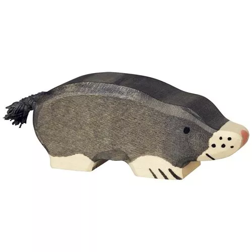 Een houten molletje uit de bosdierenserie van het Duitse merk Holztiger. Speelgoed dat mooi deel kan uitmaken van een tafereeltje, zomerse seizoenstafel of om zomaar in de kast ten toon te stellen. De mol met afgeronde hoeken ligt prettig in kinderhanden.