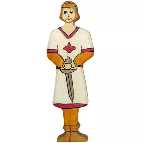 Een houten prins uit de sprookjes en ridders serie van het Duitse merk Holztiger. Het speelgoed heeft afgeronde hoeken en ligt daardoor prettig in kinderhanden. De speelfiguren van Holztiger hebben een vriendelijke uitdrukking. De gestileerde vorm prikkelt de fantasie en is voor kinderen een plezier om mee te spelen.