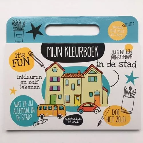 ‘Mijn kleurboek – In de stad’ van Image Books is een interactief teken- en kleurboek met eenvoudige kleurplaten, verbind-de-punten-kleurplaten en kleine opdrachten met als thema ‘wat is er allemaal te zien in de stad?’