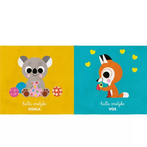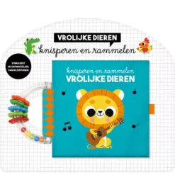 Dit knisperboekje met bijtring ‘Vrolijke Dieren’ is een speels, interactief babyboekje met lieve dierenplaatjes waar van alles te zien is, te horen en te voelen!