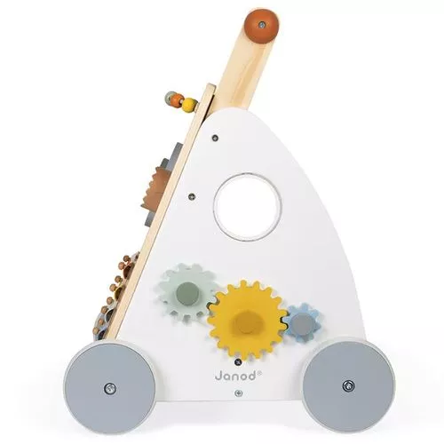 Een vrolijke multi-activiteitentrolley ‘Sweet Cocoon’ van het Franse merk Janod voor het oefenen van de eerste stapjes. Dit verrijdbare houten speelgoedwagentje heeft 9 ingebouwde speeltjes. Hiermee kan de kleine tijdens de ontdekkingstocht door de kamer zich ook nog eens te entertainen, als de beentjes moe worden.