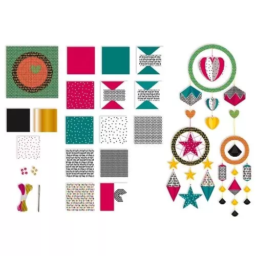 Met deze knutselset ‘Origami 3 Dream Catchers’ van het Franse merk Janod maken kinderen hun eigen mobiel en maken zij kennis met de kunstvorm origami. Creatief speelgoed dat prachtig staat in de kinderkamer.
