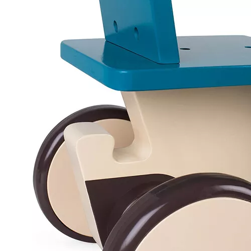 Dankzij de rubberen wielen heeft de loopauto een stevige wegligging, rijdt hij geruisloos door de kamer en komen er geen krassen op de vloer.