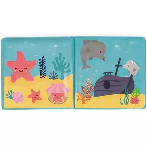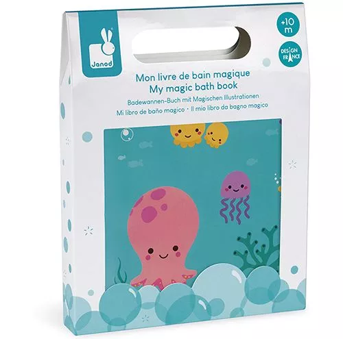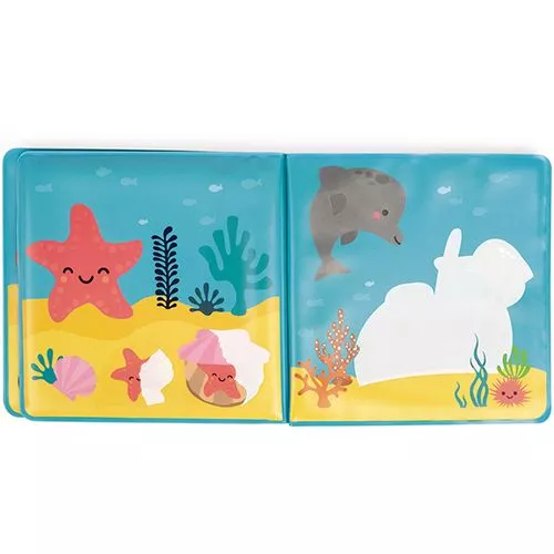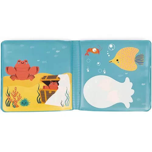 Badtijd wordt een magische belevenis met dit badboekje van het Franse merk Janod. De krab, de schildpad en hun vriendjes zijn verborgen, vind ze snel!