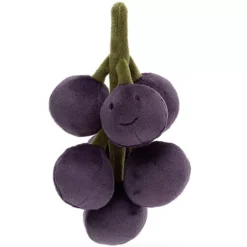 Deze bolronde knuffeldruifjes ‘Fabulous Fruit Grapes’ van het Engelse merk Jellycat zijn bijna om op te eten. Met een kleine glimlach, geborduurde oogjes en een groen stokje is deze fluweelzachte tros met druiven een zoete knuffel en een vrolijke toevoeging aan de fruitschaal.