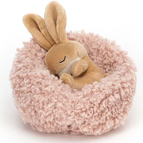 Dit piepkleine, soezende konijntje is een knuffeltje voor de allerkleinsten. ‘Hibernating Bunny’ uit de Little Legs serie van het Engelse merk Jellycat is met haar wollige teddy mandje klaar voor een diepe winterslaap, maar voor een knuffel wil zij af en toe wel uit haar nestje komen.