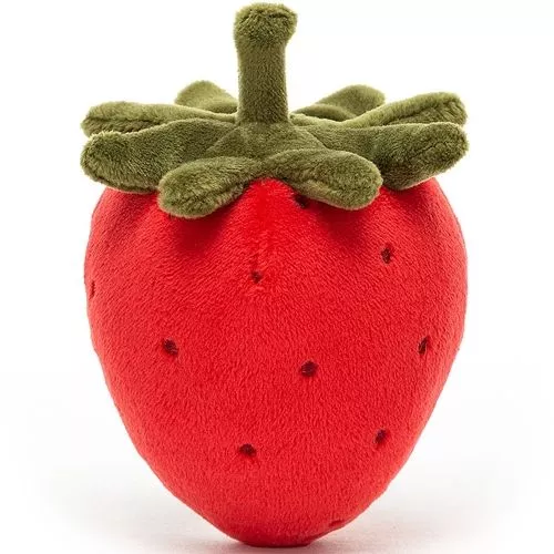 ‘Fabulous Fruit Strawberry’ van het Engelse merk Jellycat is een innemende aardbeitje. Een kegelvormig lijf in een fluweelzachte vacht met een vriendelijke geborduurd gezichtje: bijna om op te eten. De aardbeienknuffel heeft, zoals het hoort, een groen kroontje. Een heerlijk knuffeltje om overal mee naartoe te nemen en altijd te knuffelen.