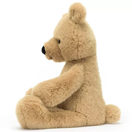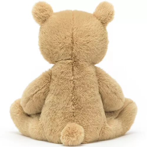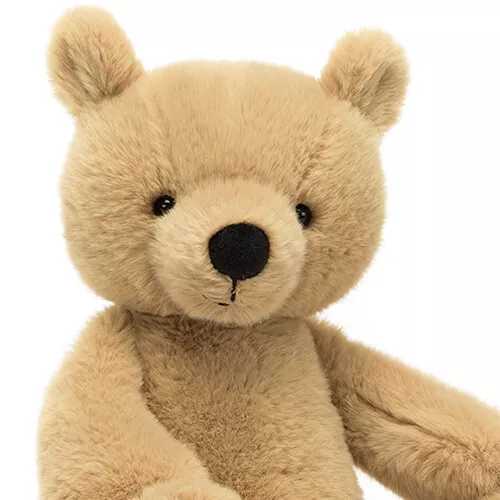 De vriendelijke snuit van deze grote klassieke teddybeer ‘Rufus Bear’ van het Engelse merk Jellycat steelt ieders hart. De charmante knuffelbeer heeft ronde oren, een neusje van imitatiesuède en een zachte pluche vacht. Aan zijn lange poten is de teddybeer gemakkelijk vast te pakken.