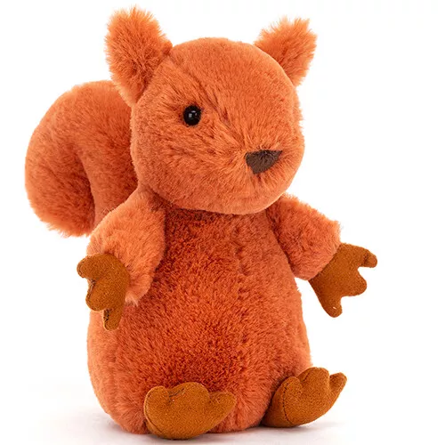 ‘Nippit Squirrel’ van het Engelse merk Jellycat is een klein, knuffeleekhoorntje met een zachte, pluche vacht, een krulstaart en suedine pootjes. Het bosdiertje heeft glinsterende kraaloogjes waarmee hij om knuffels vraagt en is een maatje voor de allerkleinsten.