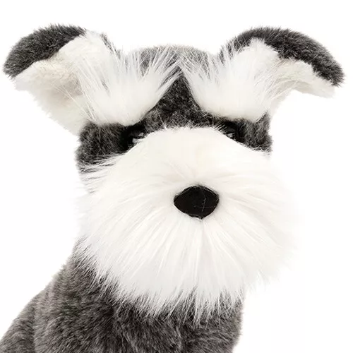 De knuffelhond ‘Lawrence Schnauzer’ van het Engelse merk Jellycat is een opvallende verschijning met zijn grote witte snor, borstelige wenkbrauwen en spitse oortjes. Met zijn slimme kraaloogjes houdt hij de boel goed in de gaten. Zijn dikke zachte grijze vacht voelt heerlijk aan en verdient hij een knuffel.