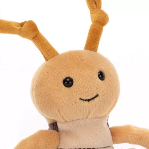 Met zijn gebogen lijfje, zes poten en grappige voelsprieten is het kleine knuffelinsect ‘Niggly Wiggly Ernie Earwig’ van het Engelse merk Jellycat klaar voor een knuffeltje.