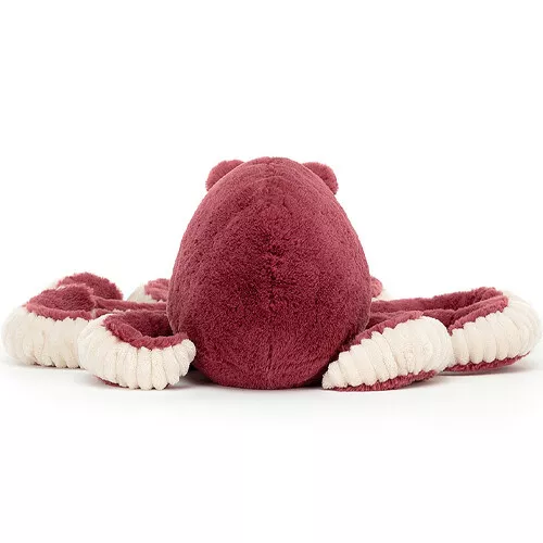 Met maar liefst acht armen is deze bordeauxrode knuffeloctopus ‘Obbie Octopus’ uit de Ocean Life serie van het Engelse merk Jellycat een fanatieke knuffelaar.