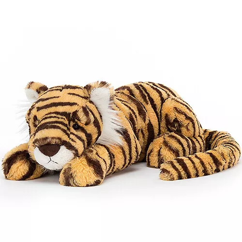 Met een prachtig strepenpatroon en pluizige bakkerbaarden wacht deze relaxte tijger ‘Taylor Tiger Large’ van het Engelse merk Jellycat op een knuffel. De forse tijgerknuffel is een onweerstaanbaar zachte knuffelvriend om lekker tegenaan te liggen.