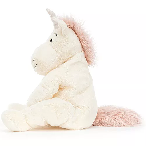 De eenhoornknuffel heeft een zachte, pluche vacht, een bolle buik, pluizige roze manen en een suedine hoorntje. Een hartveroverende knuffelaar om altijd dichtbij te hebben.