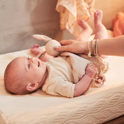 Dat is niet alleen praktisch, maar ook erg gezellig, want de speenhouder is tegelijkertijd een dromerig knuffeldoekje. Het konijnenknuffeltje met geborduurd snuitje en lange oren voelt prettig en vertrouwd aan.