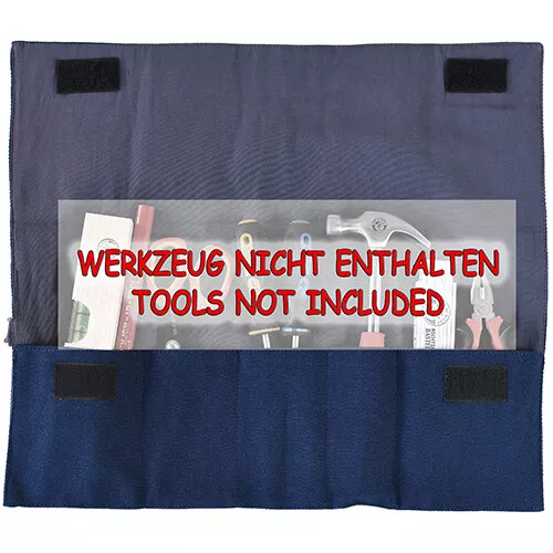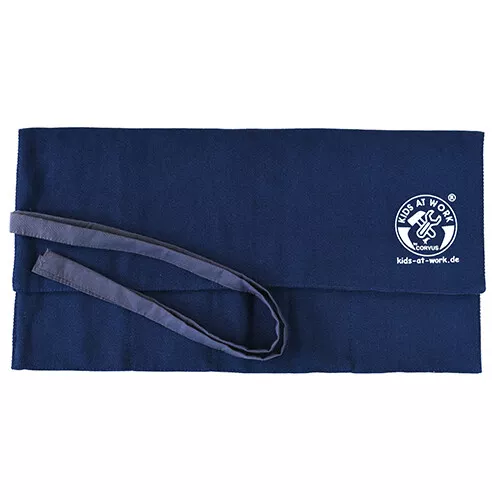 De kindergereedschapsetui heeft vijf vakken om gereedschap in te steken. Sluit het gereedschapsetui met het klittenband, rol het etui vervolgens op en knoop hem dicht. Zo kan het kindergereedschap compact vervoerd of opgeborgen worden.