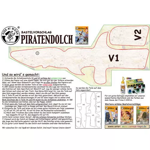 Zelf je piratendolk maken en zo mooi maken als je zelf wilt. Dat kan met deze houten zelfbouw piratendolk uit de serie Kids-at-Work van het Duitse speelgoedmerk Corvus.