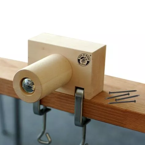 Een houten reserve rol ter vervanging, bij de blikken lantaarnprikker uit de serie Kids at Work van het Duitse speelgoedmerk Corvus.