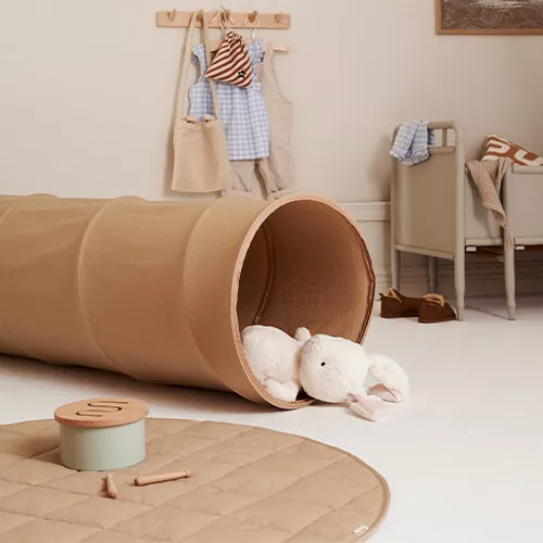 Het spelen met de opvouwbare tunnel stimuleert de motorische vaardigheden en moedigt kinderen aan om op onderzoek uit te gaan. Een geweldige manier om spelenderwijs meer fysieke activiteiten te creëren in huis of in de tuin. De speelgoedtunnel is eenvoudig in te vouwen en met linten op te bergen.