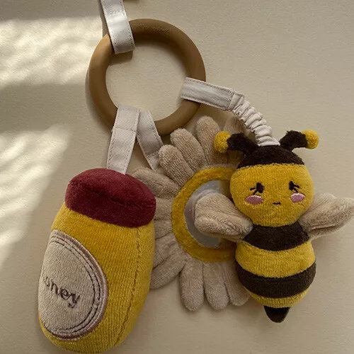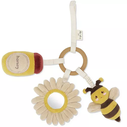 Het bijtje heeft een rekbaar bandje en heeft net als het honingpotje een belletje, waarmee baby’s zich opperbest zullen vermaken. In de kindveilige spiegel kan de kleine zichzelf en de omgeving bewonderen.