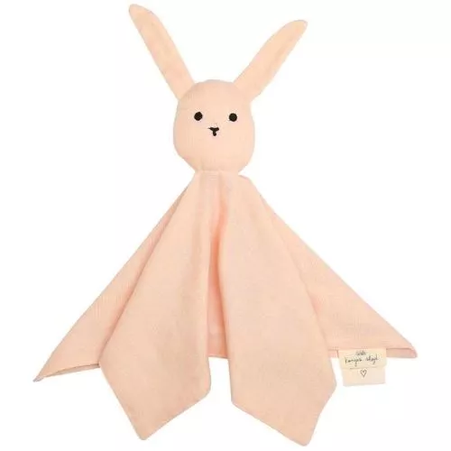 Een knuffeldoek ‘Sleepy Rabbit – Rose Dust’ van het Deense merk Konges Sløjd om mee te tutten en te frutten. Het vriendelijke konijnenkopje met lange flaporen voelt prettig en vertrouwd en geven houvast. Een heerlijk eerste knuffeltje voor kleine dromers.