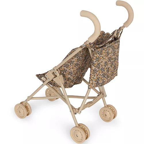 Poppen en knuffels kunnen gezellig mee op stap met deze poppenwagen ‘Doll Stroller – Orangerie’ van het Deense merk Konges Sløjd.