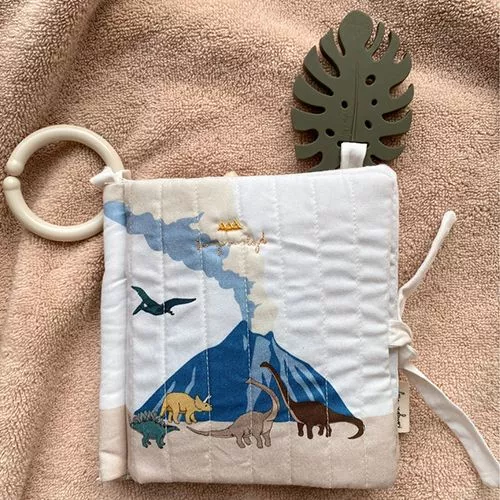 Een stoffen boekje vol met dinosaurussen ‘Dino Fabric Book’ van het Deense merk Konges Sløjd voor de allerkleinsten. Het heerlijke, zacht boekje heeft krakende elementen waardoor het gehoor van de baby word gestimuleerd.