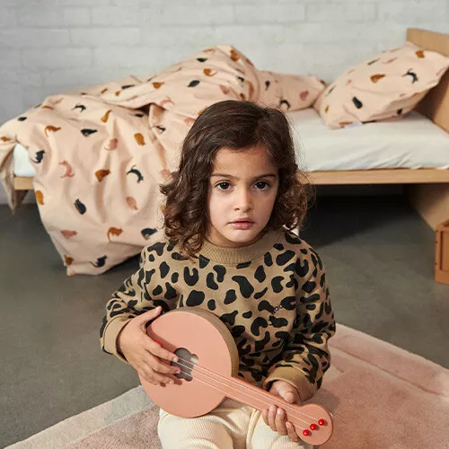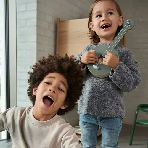 Een prachtige kinderbanjo ‘Chas – Faune Green / Dove Blue Mix’ van het Deense merk Liewood. De buik van de banjo heeft een uitsparing van een berensnoet. Met zijn zachte kleuren nodigt de banjo kinderen uit om muziek te maken.