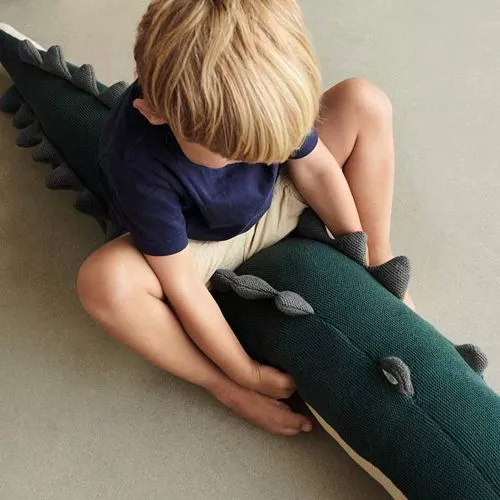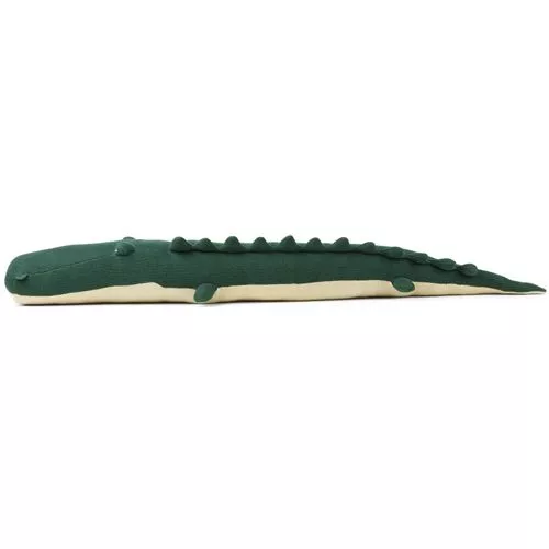 Deze gebreide speelgoedknuffel ‘Carlos crocodile’ van het Deense merk Liewood is een stevige dierenknuffel dat ieders hart zal stelen. De lange krokodillenknuffel kijkt lui uit zijn ogen, laat gemoedelijk met zich spelen en vraagt om een omarming.