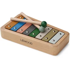 Een houten kinderxylofoon ‘Stuart Xylophone – Surf Blue Multi Mix’ van het Deense merk Liewood voor een muzikale ontdekkingsreis. Het muziekinstrument is voorzien van acht aluminium klankstaven in verschillende kleuren samen op een klankkast en wordt geleverd met twee slagstokjes.