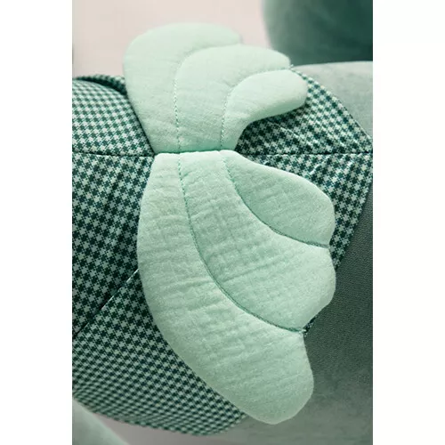 Het babyspeelgoed heeft knisperende oren om aan te frummelen, een spiegeltje en een rammelend uiltje. En in zijn grote drakensnuit worden kleine schatten veilig bewaard. Of doe er een pyjama in als hij mee gaat logeren.