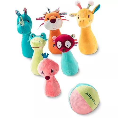 Met ‘Mijn eerste kegelspel Jungle’ van het Belgische merk Lilliputiens wordt bowlen beestachtig leuk! Dit zijn niet zomaar kegels, maar zachte stoffen speelgoedkegeltjes in de vorm van wilde dieren met o.a. een leeuw, een giraffe en een eenhoorn. Een belletje in de bal verhoogt het plezier.
