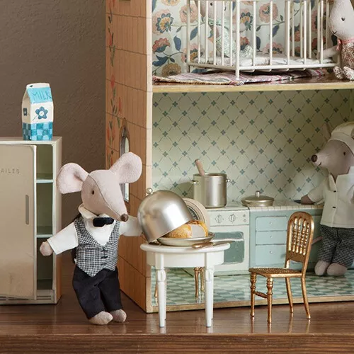 Het klassieke bijzettafeltje komt altijd van pas in het poppenhuis van het Deense merk Maileg om een lampje, plantje of andere spulletjes op te leggen. Met gedetailleerde tafelpoten voor een nostalgische look.