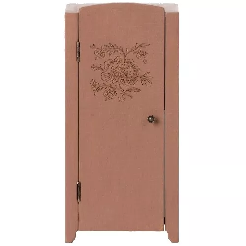 Ook knuffeltjes hebben spulletjes om op te ruimen. In deze houten speelgoedkast ‘Miniature Closet – Dusty Rose’ uit de Mini collectie van het Deense merk Maileg kan dat in stijl.