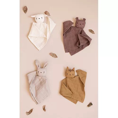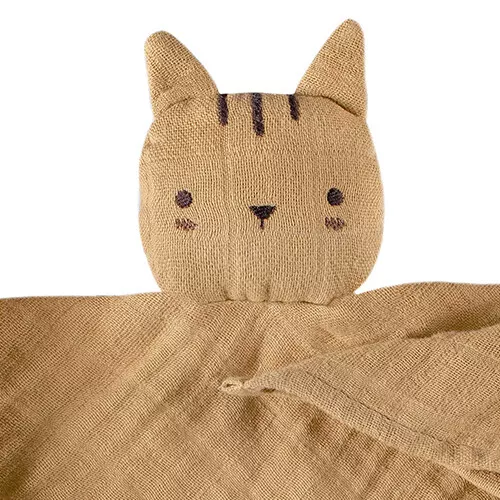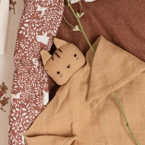 Een knuffeldoek ‘Cuddle Cloth, Tiger’ van het Franse merk Main Sauvage om mee te tutten en te frutten. Het vriendelijke dierenkopje met geborduurd tijgersnuitje voelt prettig en vertrouwd. Een heerlijk eerste knuffeltje voor kleine dromers.